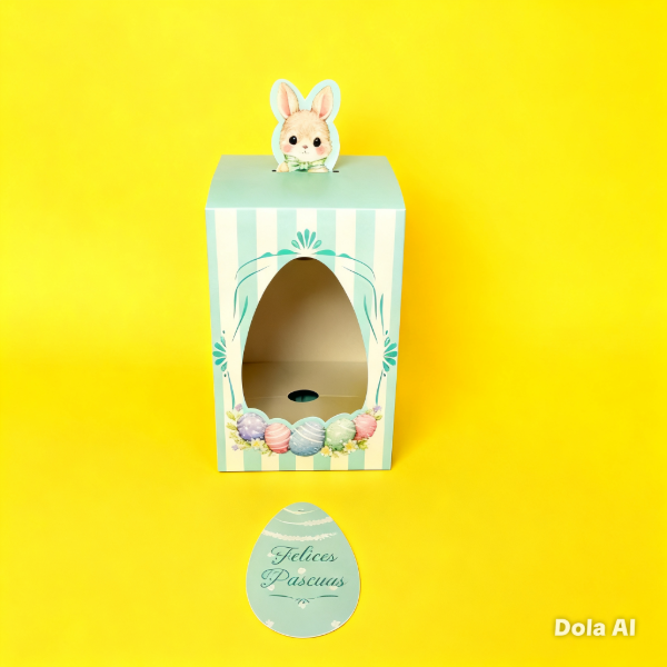 PASCUAS - BOX CONEJITO2 medida 12x12x18 C/VISOR -COD.1551 cuna huevo 15 cm